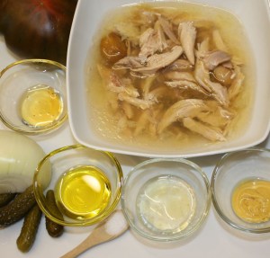 Desmenuzar la carne de la perdiz. Muchísimo cuidado con los pequeños huesos que tiene, es muy importante eliminarlos todos!!!!!!!