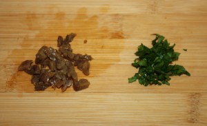 Picar la anchoa y el perejil.