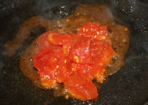 Escaldar el tomate y trocearlo.