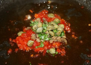 Momento de poner las alcaparras y el perejil picado.