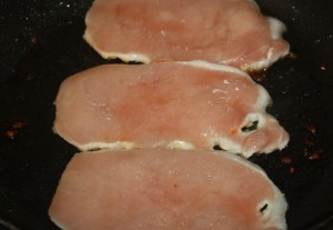 Otra vez en esa misma sartén hacer los lomos. Cuando la sartén esté bien caliente poner los escalopines. Salar. Como son muy finos, vuelta y vuelta o se quedarán muy secos.