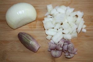 Picar la chalota y la cebolla.