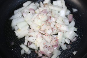 En una sartén con el aceite, dorar la chalota y cebolla a fuego medio, 5 minutos. Salpimentar. Mover de vez en cuando para que no se queme.
