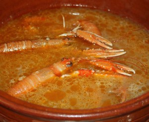 Apagar el fuego y añadir las cigalas. Dejar reposando unos 10 – 15 minutos, con el calor se harán y no quedarán secas.