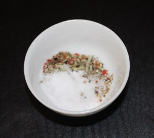 Mezclar el tomillo, romero, pimienta y sal.