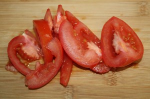 Cortar los tomates en pequeños gajos.