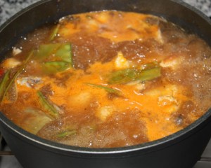 Añadir a la cazuela. Poner también, si queréis, la cayena. 30 minutos a fuego medio.