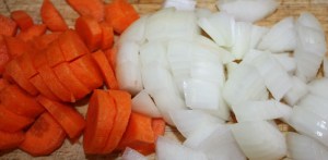 Cortar la cebolla y zanahoria en trozos grandes, no hace falta picarlas mucho ya que después lo vamos a triturar.