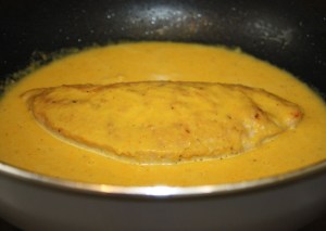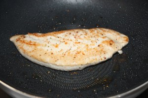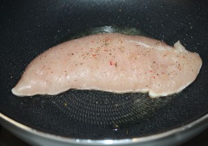 Otra vez en la misma sartén que hemos utilizado, poner la pechuga con la salsa. Tapar y cocer con el fuego al mínimo 10 minutos.