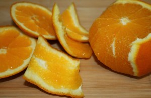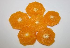 En un plato poner una capa de rodajas de naranja.