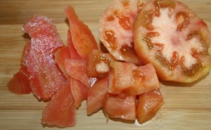 Pelar el tomate y cortar en dados medianos.