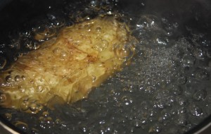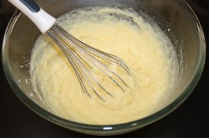 Calentar la leche sin que llegue a hervir. Retirar del fuego. Añadir el queso y mezclar con unas varillas. El queso no se fundirá del todo.
