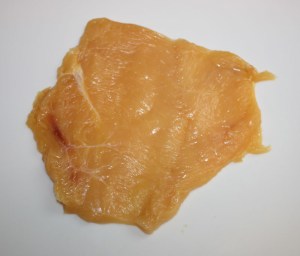 Abrir la pechuga como un libro. Recortar para que quede aproximadamente con forma cuadrada. Salpimentar por los dos lados.
