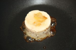 Colocar una sartén al fuego, sin nada, y cuando esté bien caliente poner la pechuga con la parte que tiene el azúcar en contacto con la sartén.