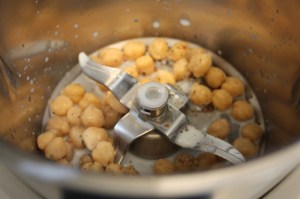 Triturar los garbanzos con la leche. Salpimentar.