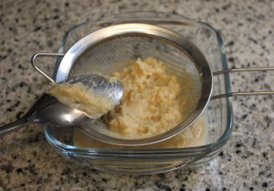 Pasar por un colador de malla fina para obtener un puré muy fino.