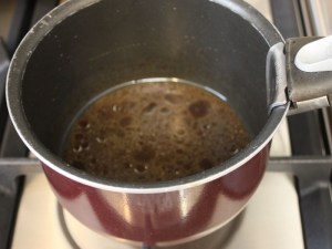 En un cazo poner la miel, soja, Perrys, vinagre de Módena, fondo de ternera y aceite de girasol. Fuego medio 3 minutos para que se reduzca ligeramente. Reservar.