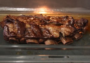 Sacar las costillas y colocar en una fuente de horno.