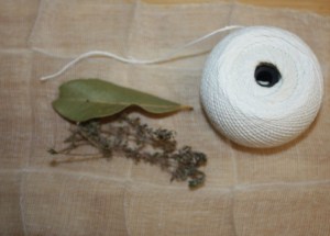 Mientras de dora la carne hacer un bouquet garni con el tomillo y laurel.