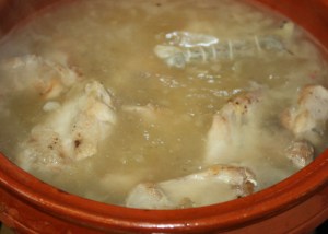 Esta receta es un guiso tradicional que se puede hacer con cualquier ave: gallina, pollo….. Yo en este caso la he hecho con una mezcla de pollo y conejo. Hacerla con lo que más os guste. La receta se hace de la misma manera, lo único que varia es el tiempo de cocción.