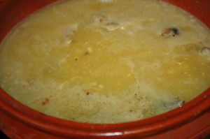 Poner un poco más de caldo para recoger bien el majado y añadirlo al guiso.