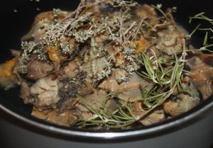 Poner una olla al fuego con suficiente agua para que cubra las canaillas. Añadir 70 g de sal por cada litro de agua, y las hierbas. Cuando el agua esté caliente añadirlas y dejar 20 minutos desde que comience a hervir.