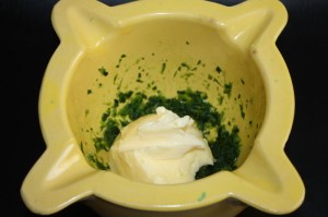 Mientras tanto vamos a hacer una mantequilla de ajo y perejil.