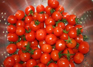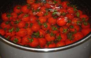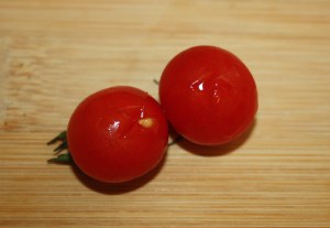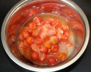 Escaldar los tomatitos ( introducir en agua hirviendo 30 segundos ).