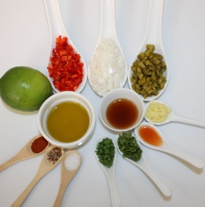 - 1 cucharada de pepinillos en vinagre también cortados en pequeños dados