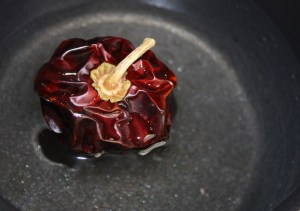 En un cazo poner agua a calentar. En cuanto esté caliente sacar del fuego e introducir en el agua la ñora. Dejar una hora a remojo.