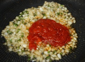 - 1 calamar ( yo he utilizado los recortes de calamar de la receta que os di el otro día de trampantojo )