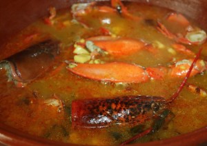 Cuando queden 5 minutos añadir el bogavante con el caldo que ha soltado en el plato donde lo teníamos reservado.