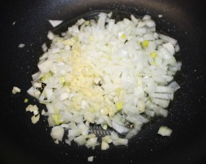 Rehogar en una sartén con las 6 cucharadas de aceite y una pizca de sal. Fuego bajo 10 minutos.