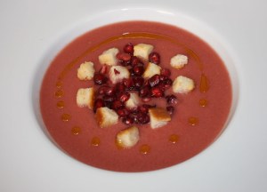 Servir con unos granos de granada y unos tostones por encima. Regar con unas gotas de AOVE.