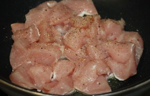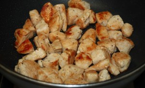 Dorar los dados de pavo con 3 cucharadas de aceite. Salpimentar.