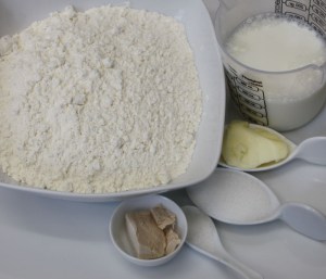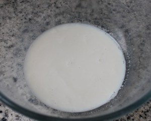 Hervir la leche y enfriar hasta los 40º, que esté tibia. Pasar a un bol y añadir la levadura y el azúcar. Dejar reposar 15 minutos para que la levadura se active.