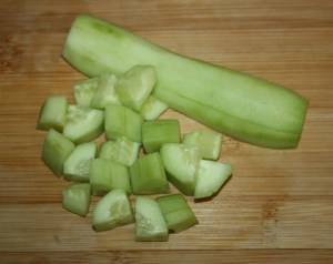 Pelar el aguacate, cortar en dados y ponerle un poco de zumo de limón para que no se oscurezca.