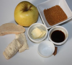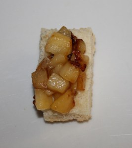 Tostar dos rebanadas de pan. Colocar los dados de manzana….