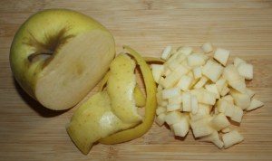 Pelar media manzana, cortar en pequeños dados.