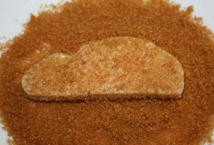 En un plato colocar el azúcar moreno. Rebozar las dos rodajas de foie por los dos lados.