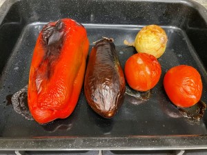 En una fuente de horno colocar las verduras lavadas, sin nada de aceite. Introducir en el horno. 30 minutos.