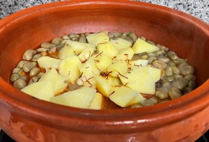 Chascar la patata y añadir al guiso junto con las hebras de azafrán.