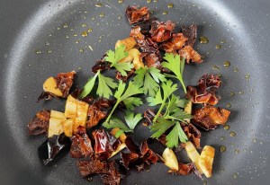 Eliminar el tallo y las semillas de las ñoras. Trocear.