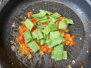 Añadir las judías troceadas. 2 minutos a fuego medio.