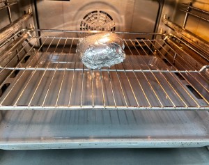 Envolver en papel de aluminio y meter en el horno, precalentado a 180º, 5 minutos.