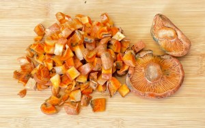Limpiar los champiñones o las setas que utilicéis con un cepillo ( como ya os dije en otra receta tener en la cocina un cepillo de dientes para este uso ). Trocearlos.