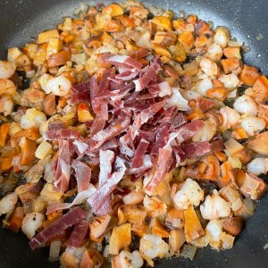 Añadir las tiras de jamón.