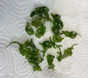 También lo podéis acompañar con la rúcula frita. Freír un minuto en aceite bien caliente y escurrir sobre papel de cocina para que elimine el exceso de aceite.