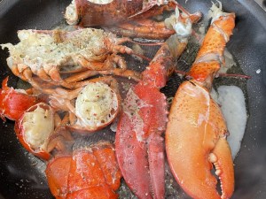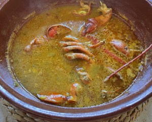 Incorporar las pinzas. Otros 5 minutos y poner el resto del bogavante, cuerpo y cabeza. 3 minutos todo junto y apagar el fuego ya que el arroz se acabará de hacer con el calor residual.