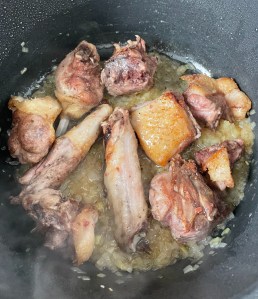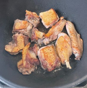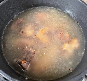 Cubrir con agua, añadir una cucharadita de sal y dejar cociendo a fuego bajo tapado hasta que el pato esté tierno, aproximadamente 1 hora.